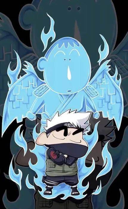 當卡卡西老師遇上了蠟筆小新的畫風,整個人都變得非常可愛了。卡卡西老師召喚出的須佐能乎是「阿呆」,還是挺讓人意外的。