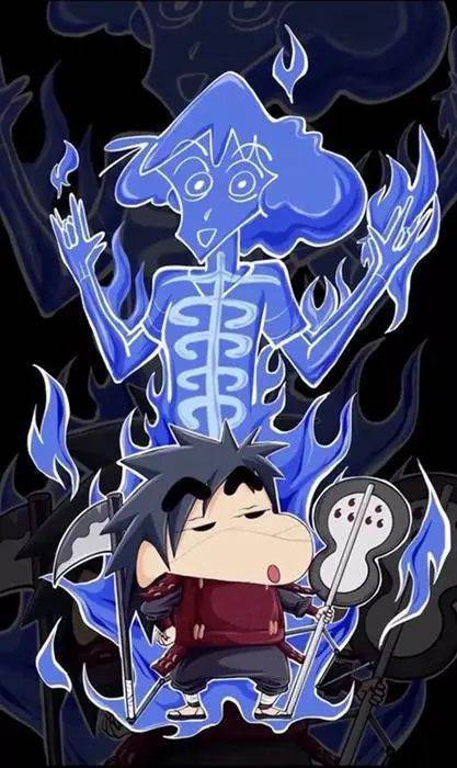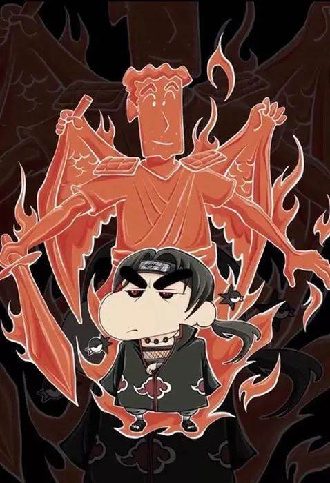 當宇智波鼬變成了蠟筆小新的畫風,整個人的表情看起來都很奶凶。在他身後的須佐能乎是野原廣志,這個角色是蠟筆小新的爸爸。這一波聯動真的很有意思。