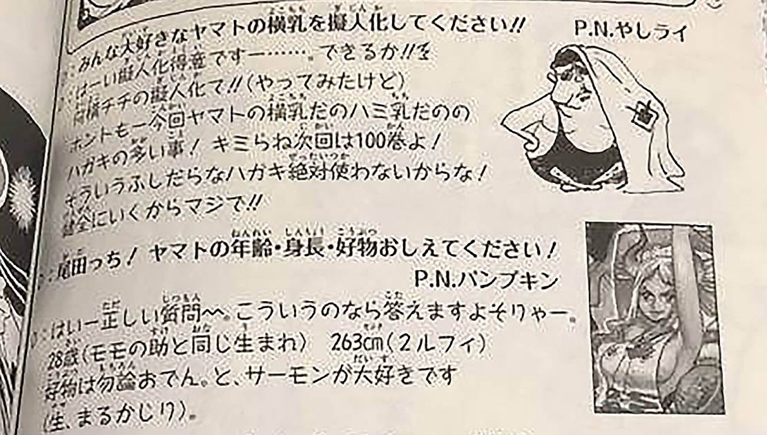 對了,除了擬人化,尾田在SBS也提到了關于大和的一些資訊。