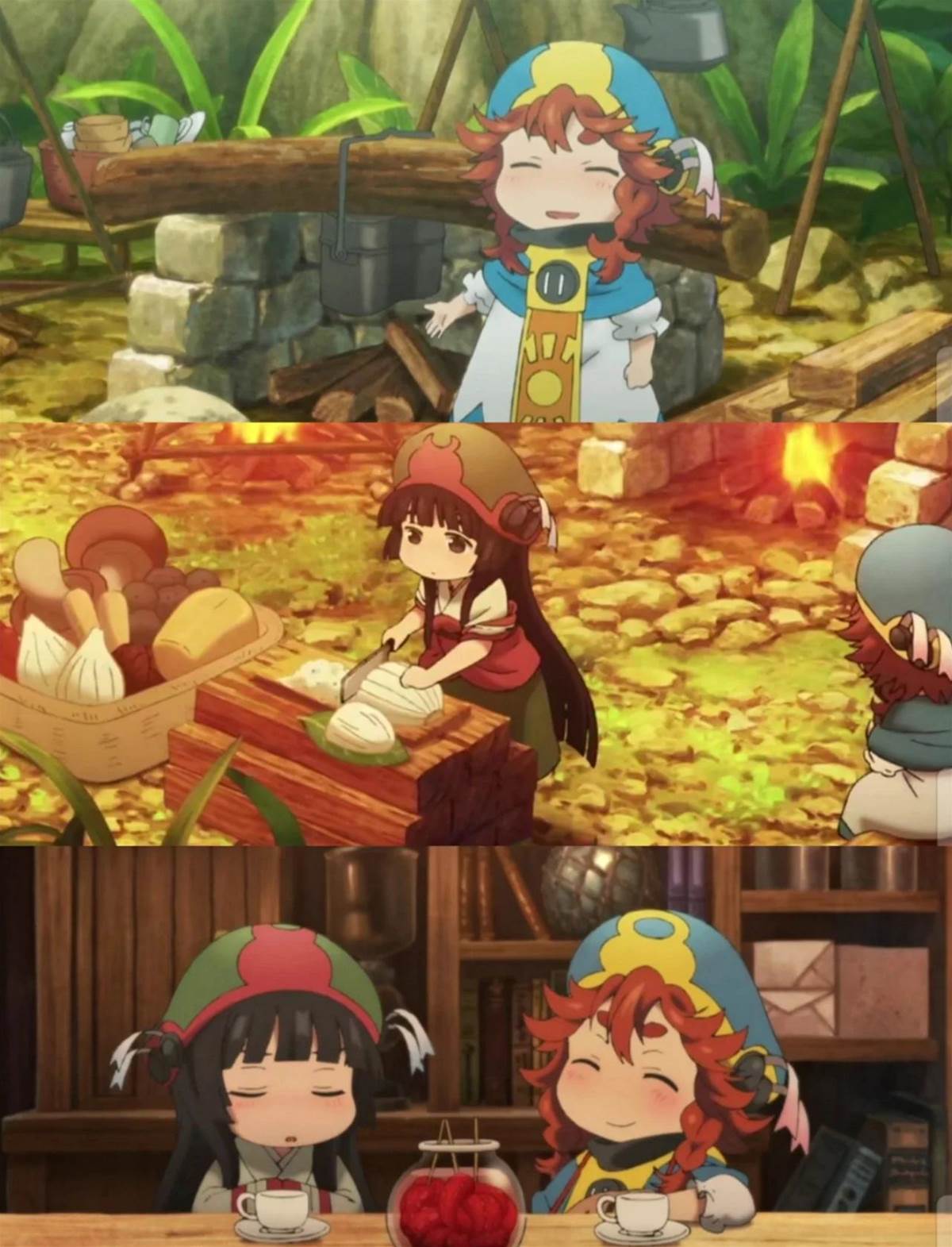 而御子地則是黑髮理性派,擅長家務料理而且還特別擅長唱歌(本人沒有自覺),兩個小人妹子在大樹根下的房屋中一起生活與各種各樣的小人朋友相遇相識。