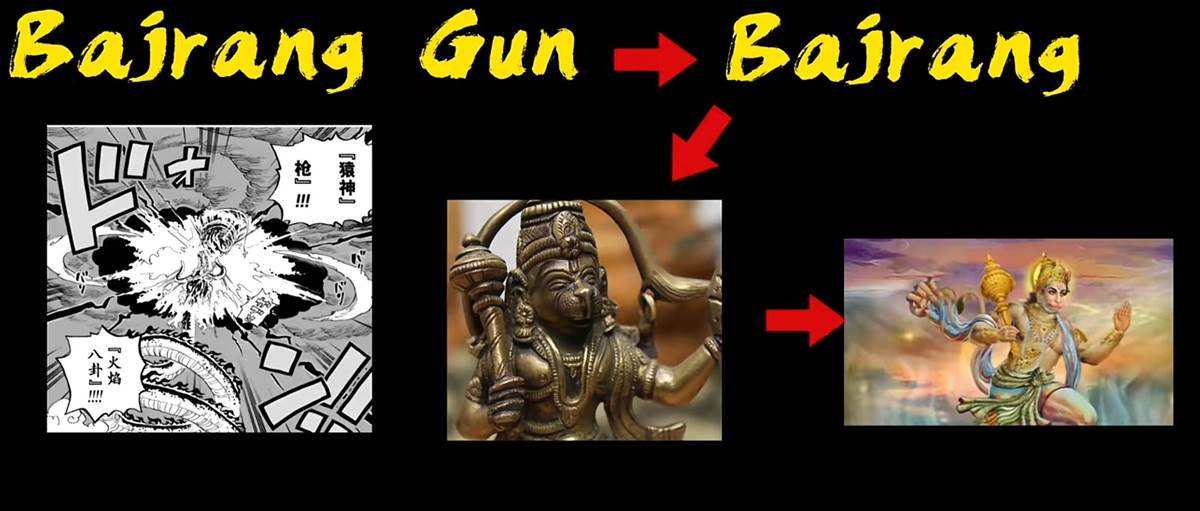 關于魯夫的「猿神槍」,當初魯夫這一招出現就分析過,魯夫的招式「猿神」指的是印度神猴哈奴曼。而印度神猴哈奴曼的爸爸,就是「風神」伐由,司掌自然界的風與大氣,身份完美對應。
