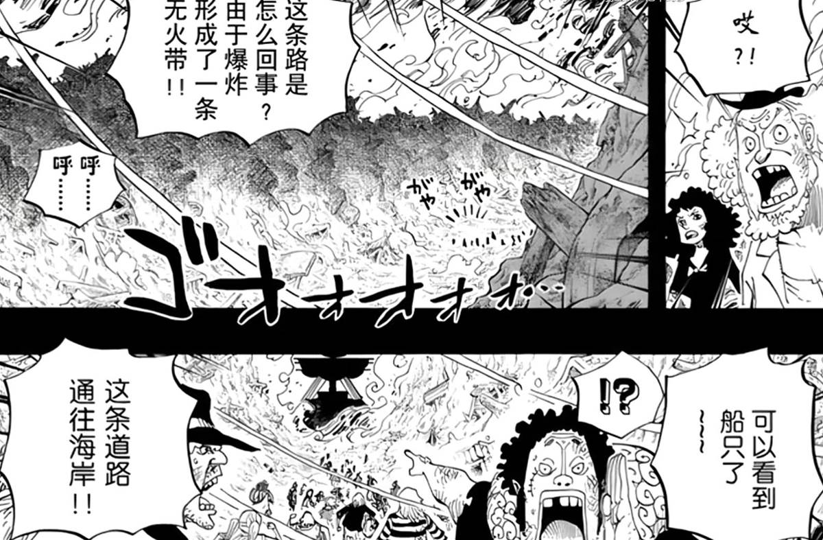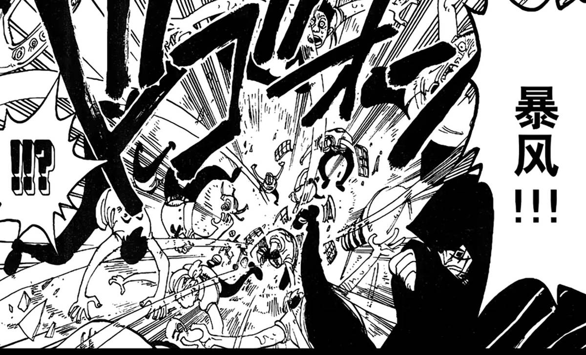 連招式釋放之後,都是「暴風」來襲的空白,為魯夫開闢前進的道路,之後不確定物終點站這裡,龍等人到達了這裡。