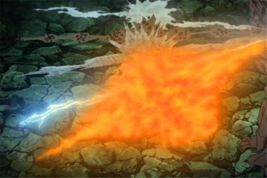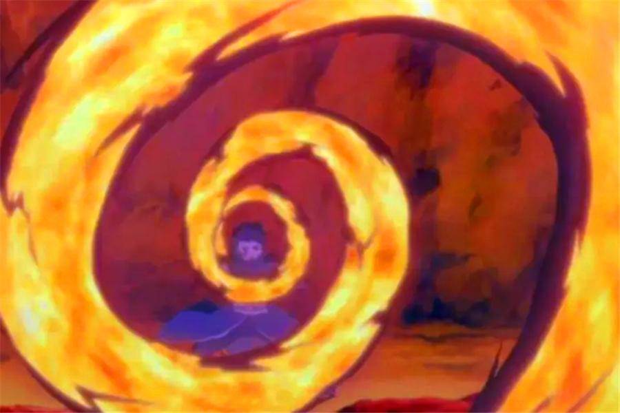 宇智波帶土將火遁忍術與自己萬花筒寫輪眼的瞳術神威相結合,先利用神威扭曲走位的空間引發渦卷狀的空間暴風,然後再使用火遁從口中吐出旋轉的火之蛇,二者結合之後就形成了巨大的旋轉火焰,無論是速度、范圍,還是威力,都是極其恐怖的!