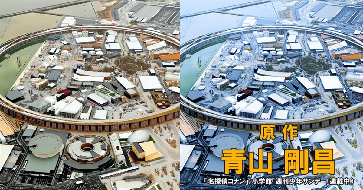像是之前的大阪世博會,空中餐廳等等,只要稍微加上幾個字,那就變成了劇場版裡的一幀畫面。