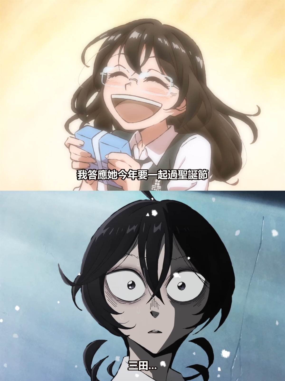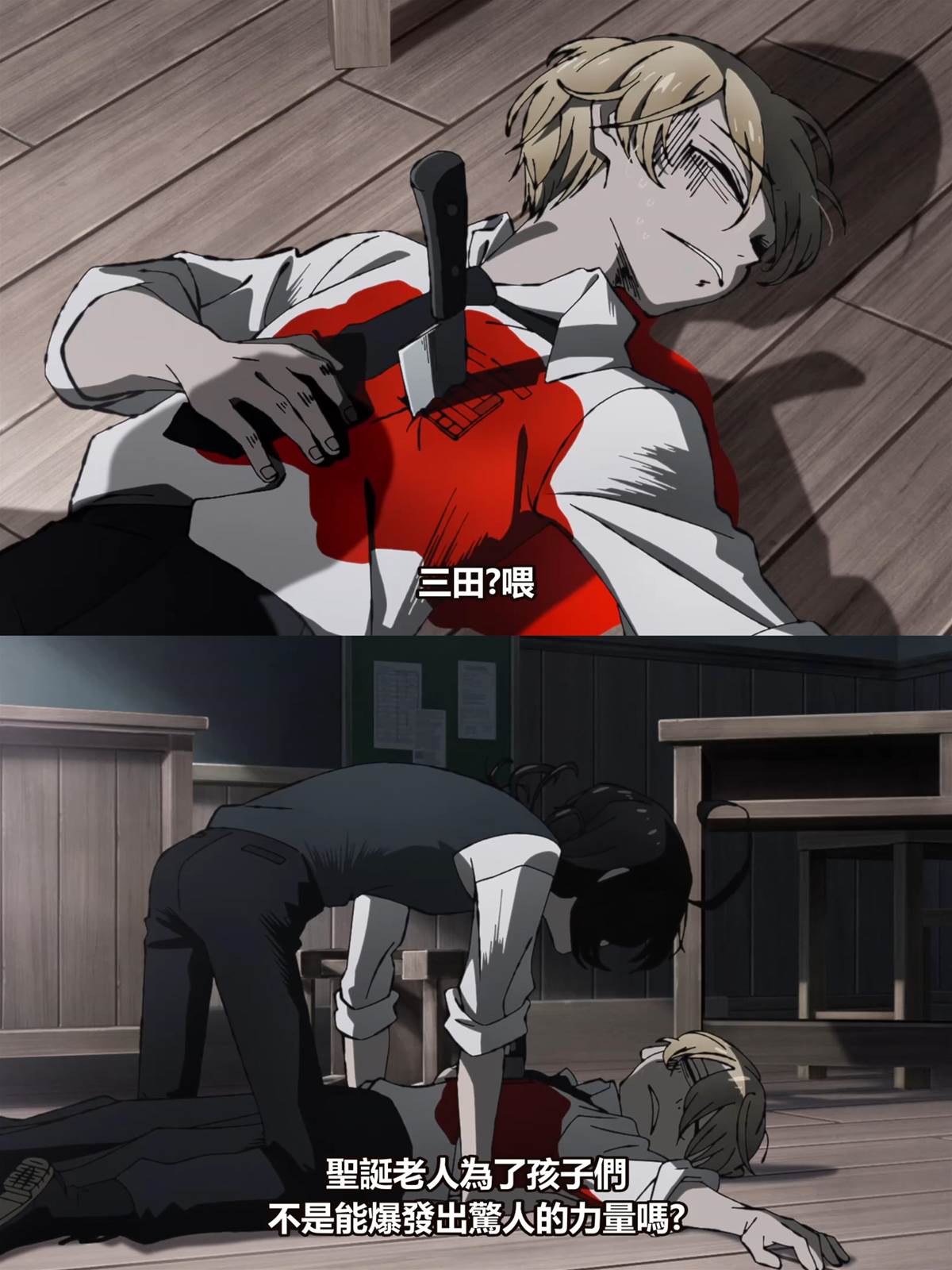 1. 國中生三田被性格突變的女同學東村用菜刀刺傷,原因是冬村認定他是聖誕老人的後代。