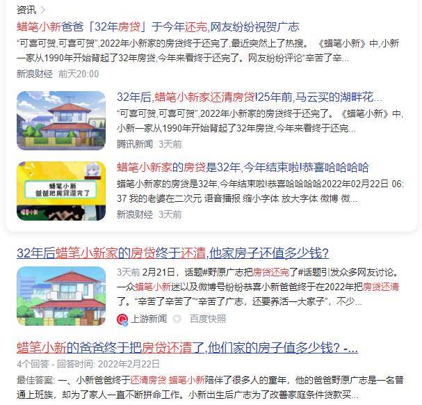 今年的2月21日,網上忽然有很多《蠟筆小新》的漫迷發文,祝賀野原廣志終于將32年的房貸還清了。