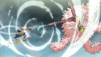 第二場:魯夫VS多弗朗明哥,明哥是魯夫有史以來遇到的最強大的對手,明哥應該有準大將的實力,魯夫戰鬥的很艱難,最後魯夫開啟四檔再加上有點主角光環的作用才打敗了明哥。