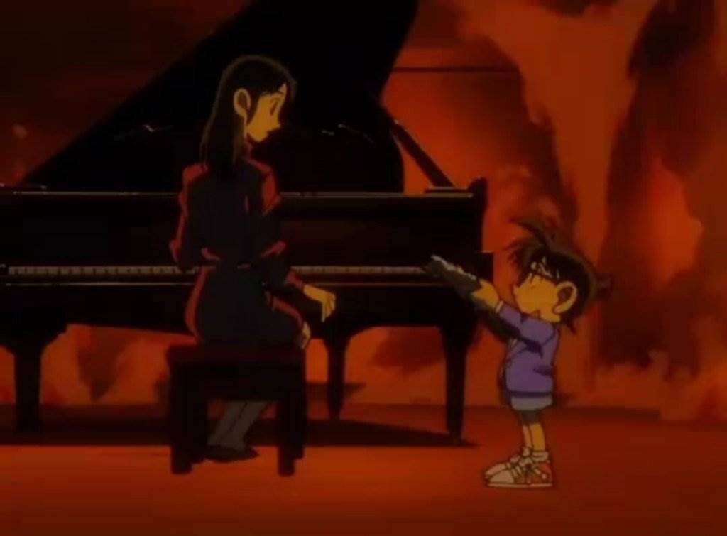 灰原哀短暫變回成人,面對黑衣組織的追捕,當然這一集的經典畫面就是灰原裸背。