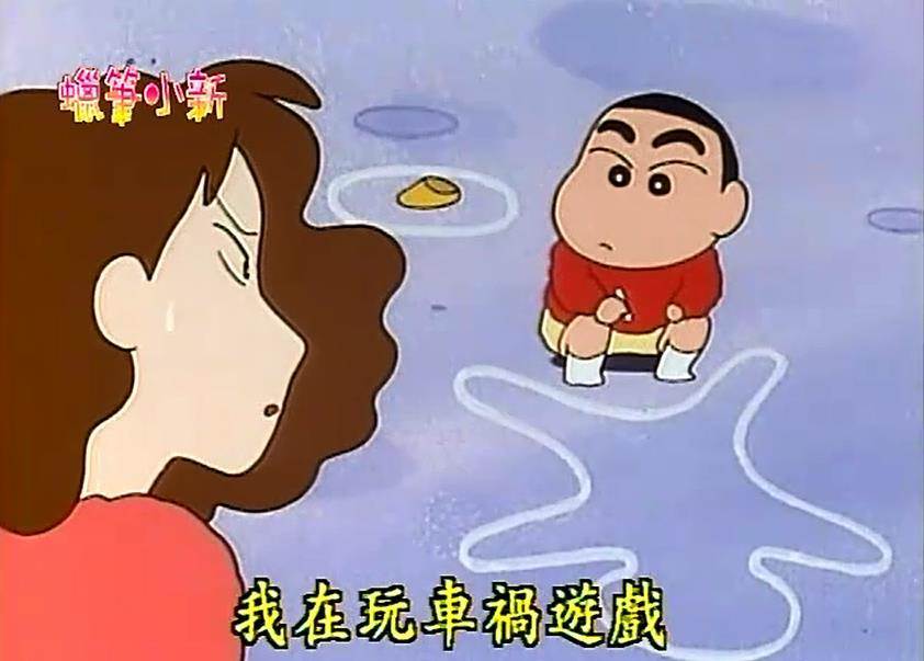結果只是一場烏龍鬧劇,小新正在玩所謂的「交通事故游戲」。