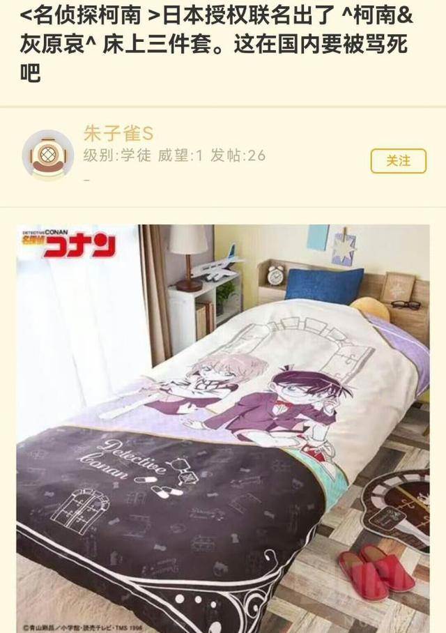 最近刷到一條訊息,《名偵探柯南》日本官方授權,推出了一套床上三件套聯名周邊,而其中一款的圖案,赫然是江戶川柯南× 灰原哀。