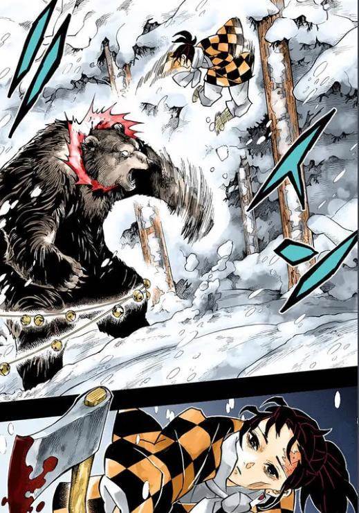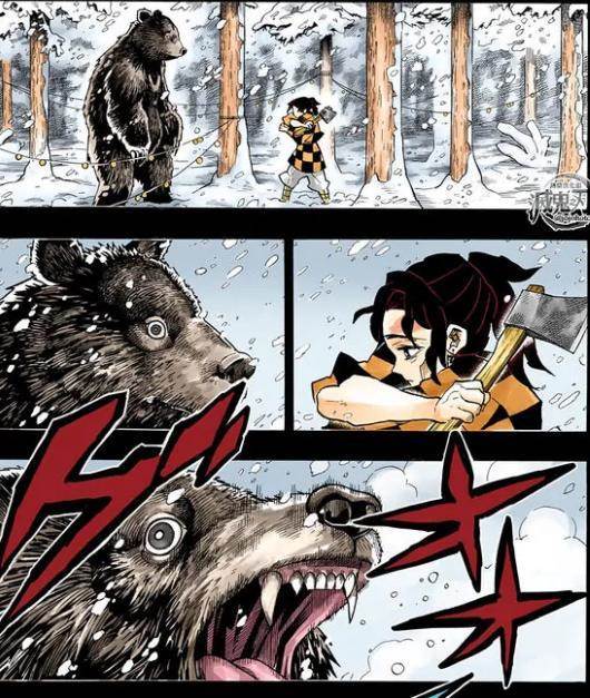 被日之呼吸選中的人身上都會自帶斑紋的設定。再來看看炭治郎,炭治郎雖然也是日之呼吸的使用者,但是他並非是日之呼吸選中的人,他頭上的疤其實是之前在雪地裡砍樹,為了保護弟弟妹妹,被熊抓傷之後留下的。