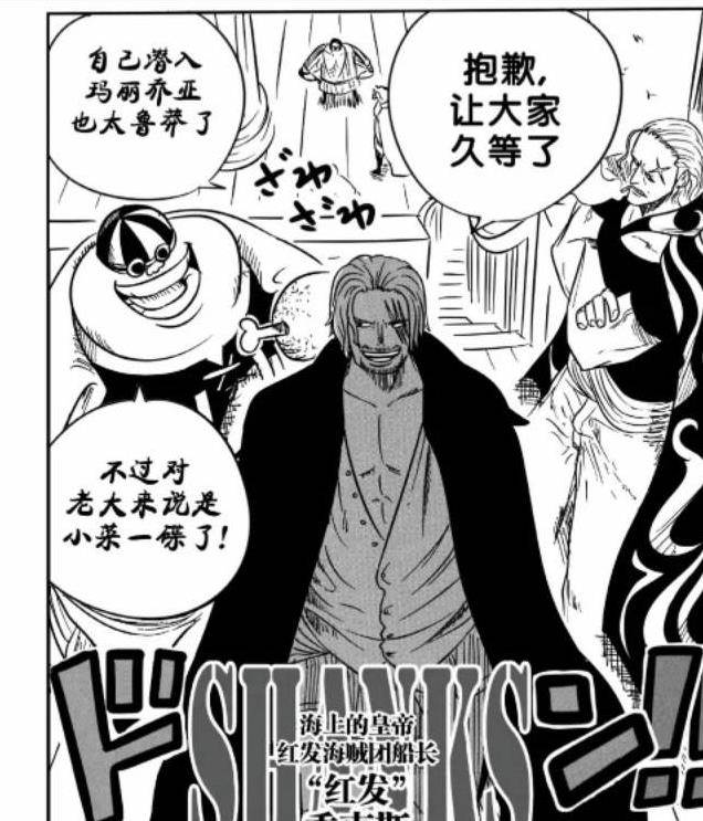 另一方面,紅髮香克斯潛入聖地瑪麗喬亞與五老星見面,紅髮香克斯與五老星商議,讓他們儘快採取行動。由于四皇之間的情況太過復雜,五老星還在觀望之中。紅髮香克斯回到船上,本貝克曼已經預料到找五老星沒用,紅髮香克斯決定親自去找黑鬍子,一場大戰即將爆發。