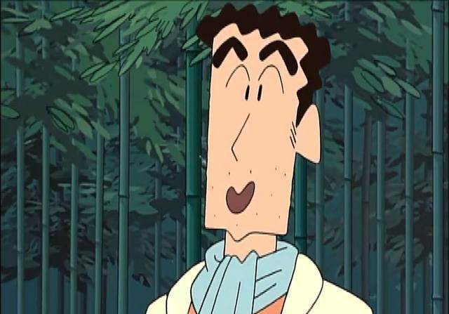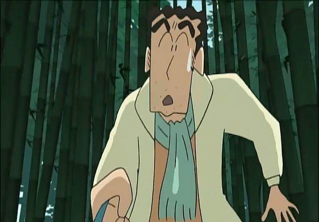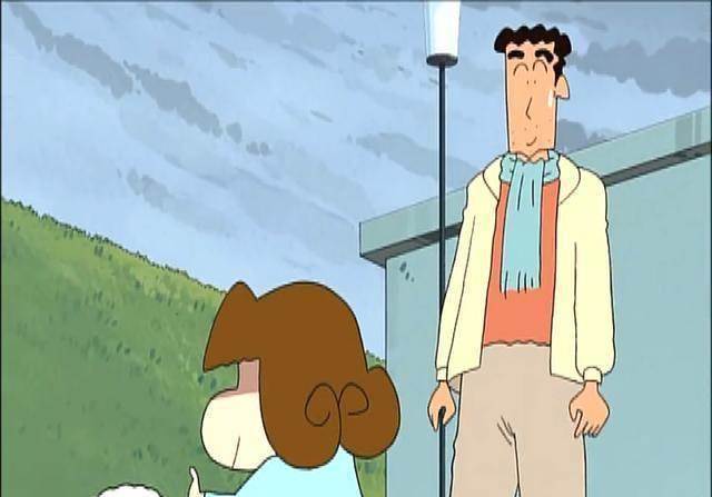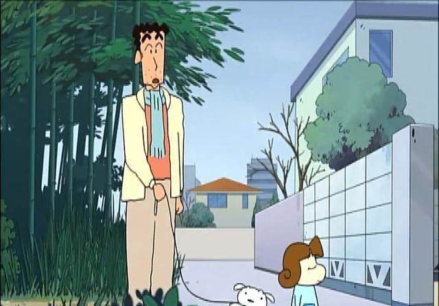 3、新子與爸爸享用美食之後,他們就慢慢走出竹林,來到巷子中,這時候爸爸突然看到有一家店門口擺放了玩具,想買給新子和小新他們,誰知新子迅速抱住爸爸的腿,並大喊:「我不要那種東西」,一輛車迅速從爸爸前方駛過,爸爸終于得救了。
