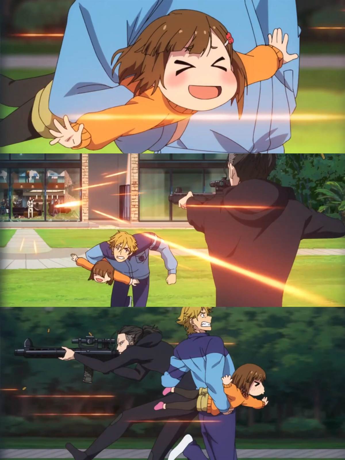 兩位男性殺手鎖定的目標無一倖免,他們卻落得得撫養一位四歲女兒的地步。