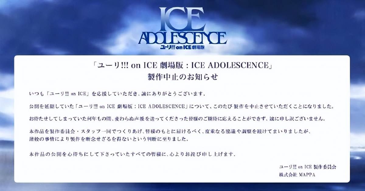 最讓粉絲意難平的,莫過于劇場版《ICE ADOLESCENCE》的遺憾腰斬。這部承載了無數觀眾期待、原定2019年上映的作品,歷經多次延期,讓粉絲從焦急等待逐漸變成漫長守候。可等來的不是上映通知,而是2024年官方官宣的取消訊息。