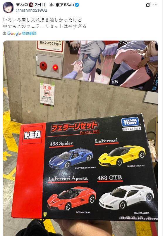 這件事發生在前幾天,某位以成人向原創同人漫畫聞名的畫師,曬出了法拉利的模型套組。