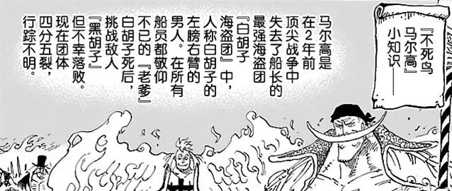 馬爾科,外號「不死鳥」,白胡子海賊團第1隊隊長兼船醫,懸賞金為13億7400萬貝里,被稱為白胡子的左膀右臂,動物系·鳥鳥果實·幻獸種·不死鳥形態能力者,擁有超強的再生能力。