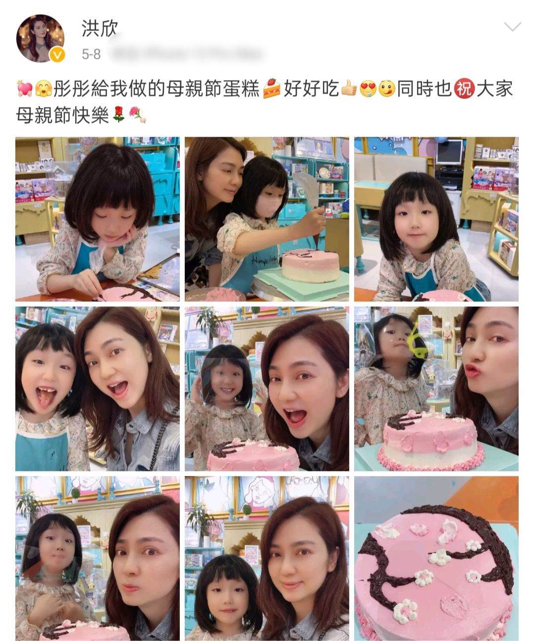 洪欣是一個很注重陪伴孩子的母親,所以經常花時間和孩子一起做各種各樣的事情。就在母親節的前一天,洪欣在個人社交平臺分享了女兒為自己做的蛋糕的照片並配文祝大家母親節快樂。照片中的洪欣與女兒沖著鏡頭擺出搞怪的表情,不難看出母女二人關係非常融洽。