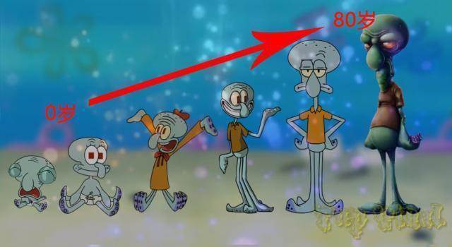 章魚哥的變化可以說是《海綿寶寶》眾多的角色中比較讓人感到可怕的,小時候的它長相並不是非常的可愛,甚至是有種醜陋的感覺。慢慢的章魚哥長大了,變得比之前要更加的英俊了。我們可以看到兒時的他還是比較快樂的,臉上也總是洋溢著非常開心的笑容。
