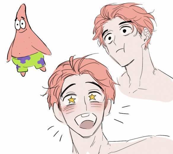 派大星在看到了海綿寶寶後,滿眼都是小星星了啊~
